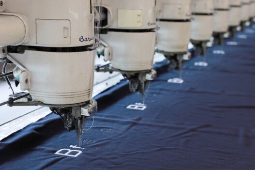 "Stoffe, deren Schnittmuster vorbereitet wurden, werden automatisiert perfekt zugeschnitten.